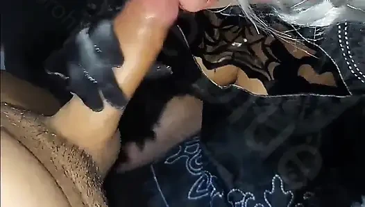 Hot stepsister caught step brother jerk with her panties and help with handjob